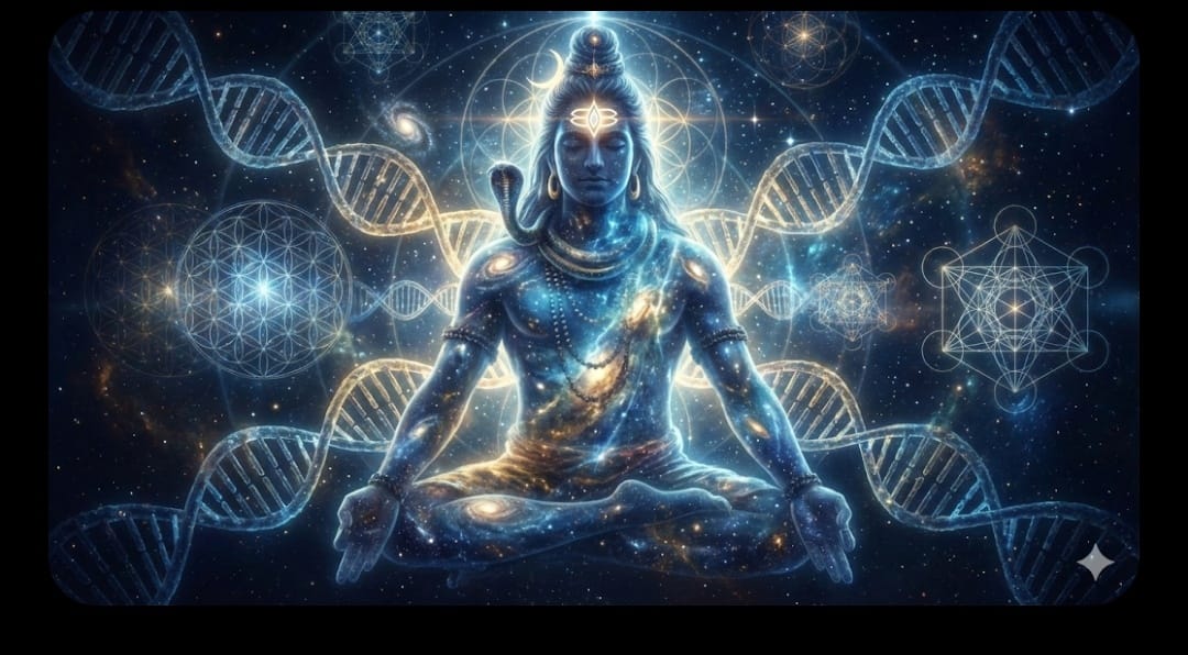 ​आधुनिक खगोल भौतिकी (Astrophysics) इसे ‘डार्क मैटर’ या ‘डार्क एनर्जी’ कहती है। योगिक संस्कृति में, इसी असीम, अनंत शून्य को हम ‘शिव’ कहते हैं। शिव वह ‘Source Code’ हैं जहाँ से ब्रह्मांड का हर डेटा पॉइंट शुरू होता है और अंत में उसी में विलीन हो जाता है।